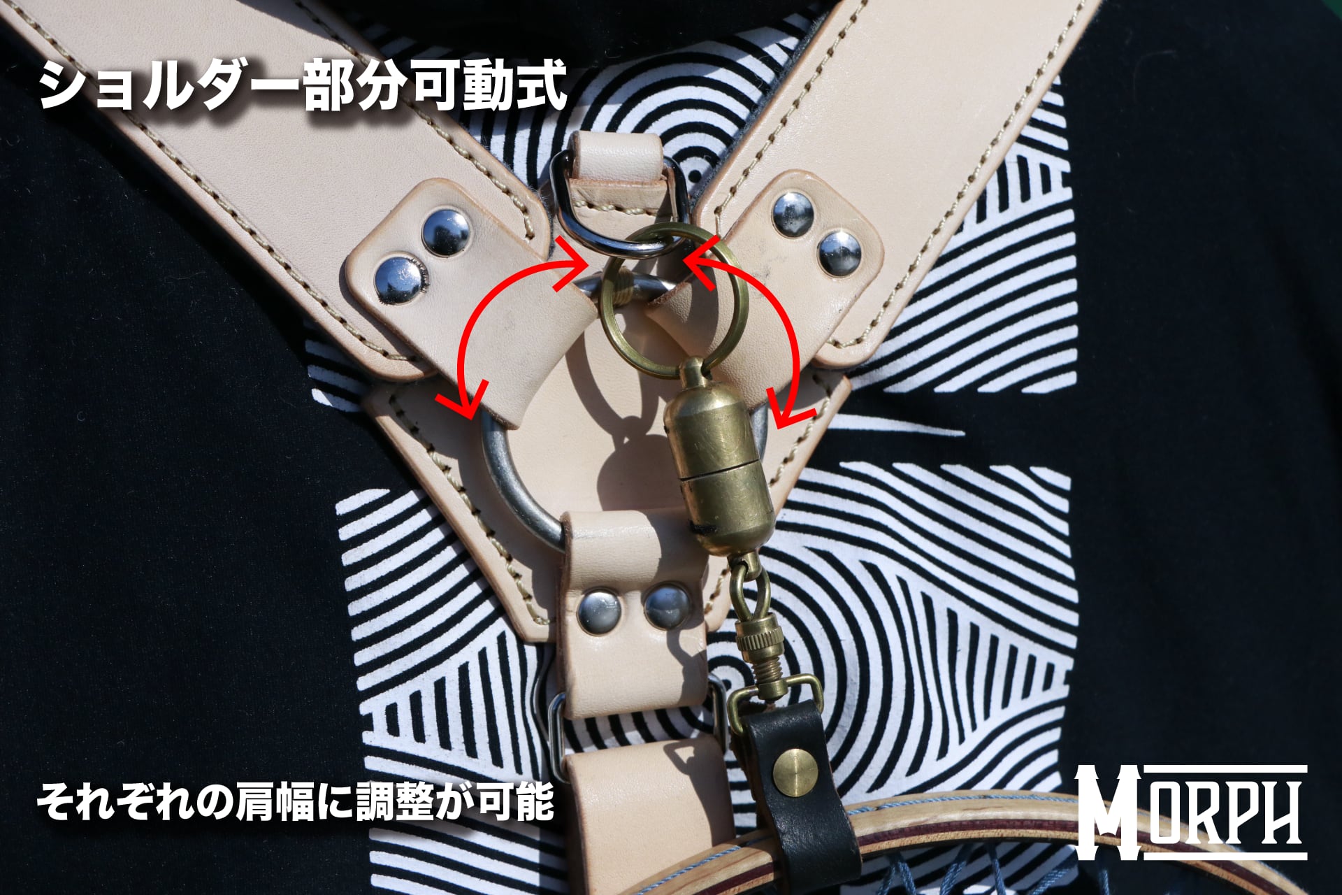 それぞれの肩幅にフィットするように可動式を採用。冬季特有の防寒ダウン・ジャケットの着用時の着膨れした後のサイズ感にも対応します。