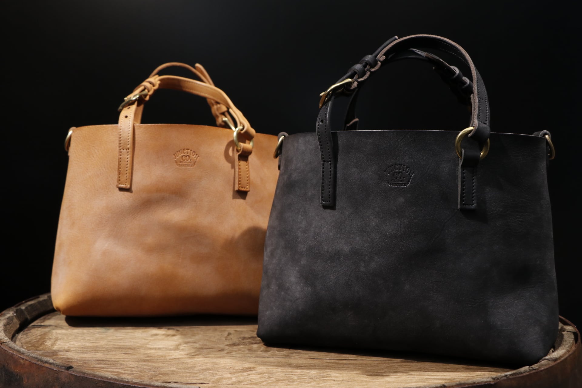 ワックスシュリンクレザーを使用したハンドバッグ。