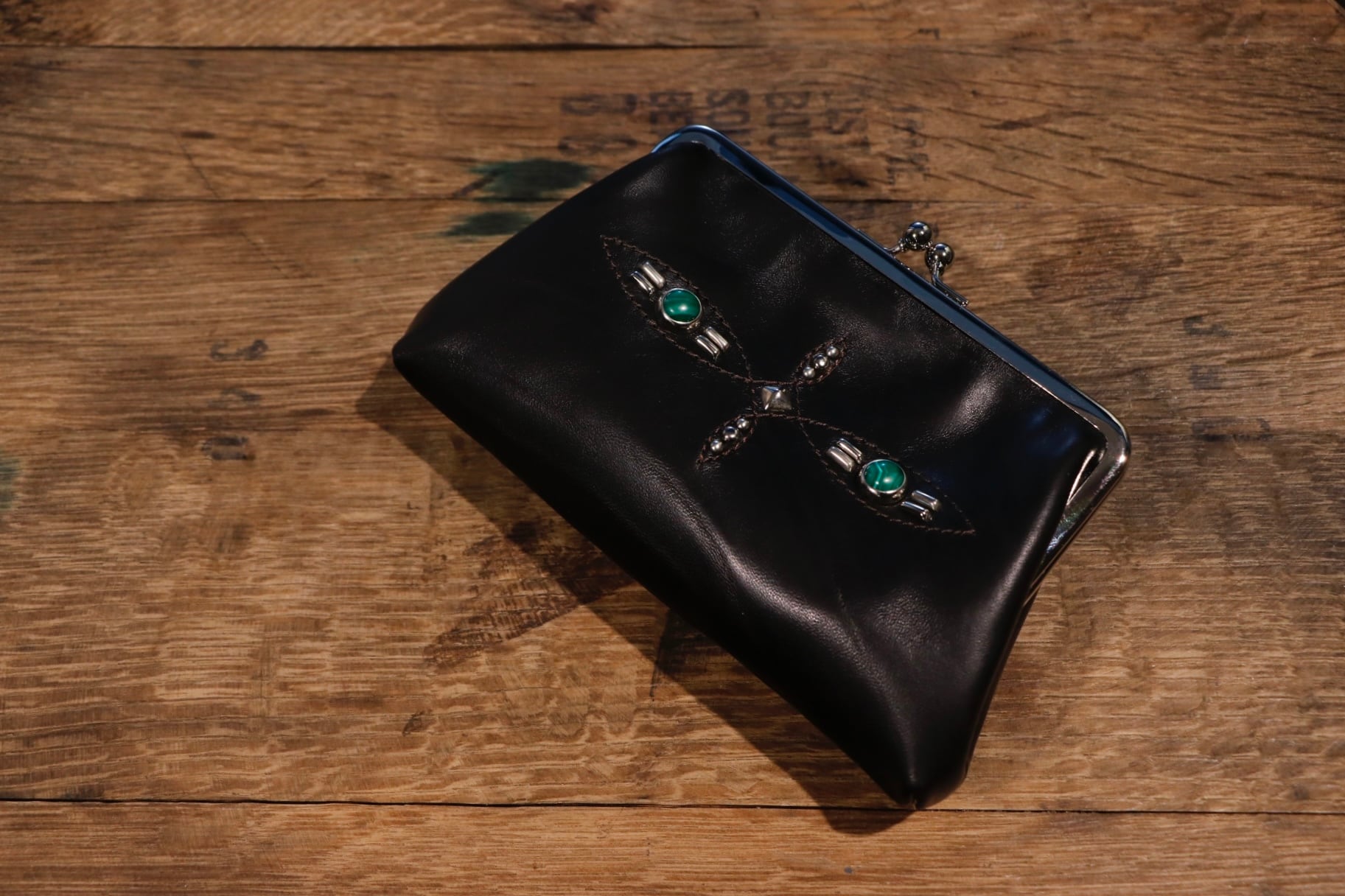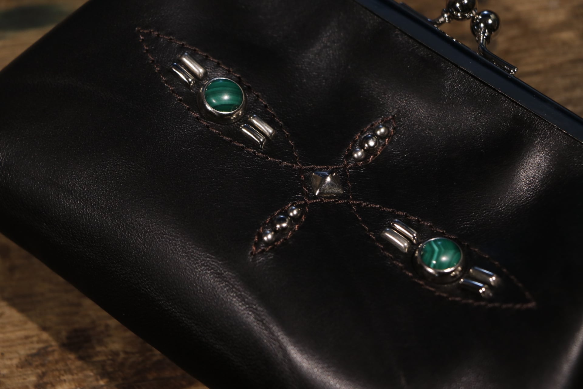 存在感のあるスタッズ・天然石”マラカイト”を施した