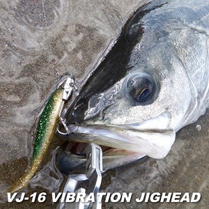 多くの経験によって導き出されたジグヘッドデザインと、装着するコアマンワームとのマッチングで、ボディ全体が絶妙に揺れるバイブレーションを発生します。圧倒的な食わせ能力をもつワームが、より細かく振動してシーバスを強烈に誘う。しかもそれがまたぶっ飛びの飛距離なので、完全に反則レベルです。16gのウエイト設定によって水深3mぐらいの浅いレンジを得意とします。スレたシーバスをバイトにまで持ち込むことの出来るこのルアーが、新しい領域を拓きます。VJの圧倒的パフォーマンス。世紀末ベイト的ルアー!間違いないです。