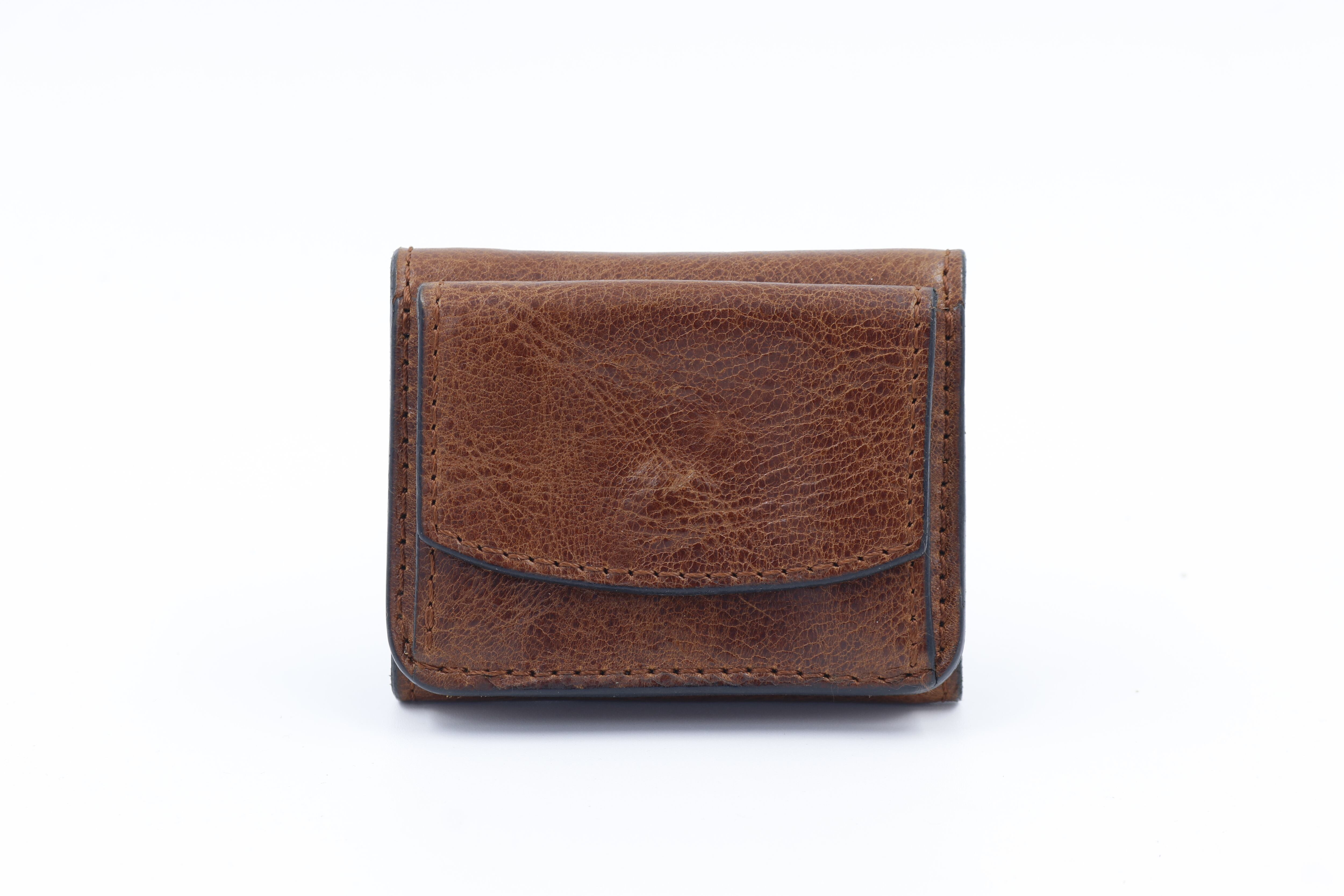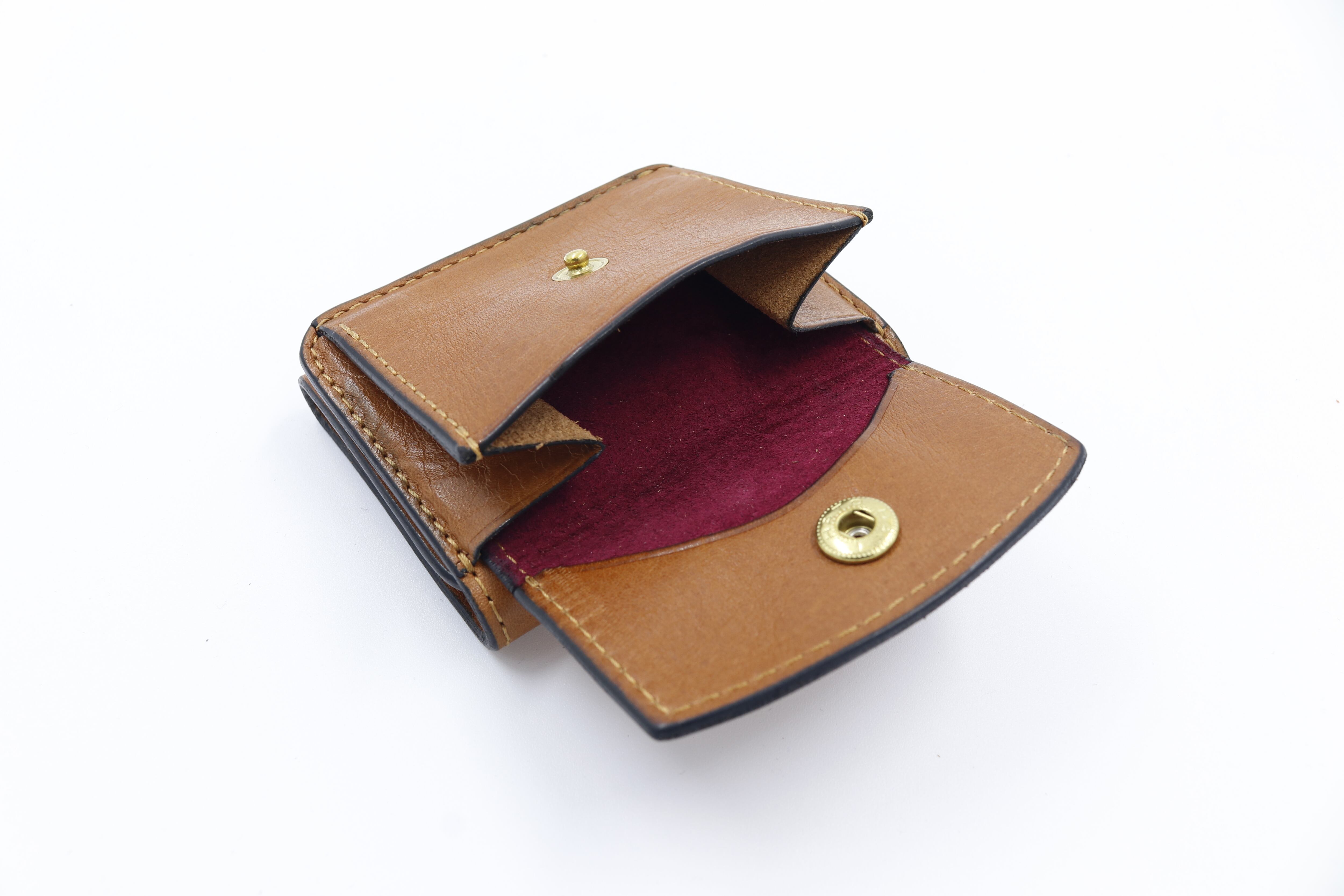 三つ折りでデニムの後ろポケットにすっぽり入る手のひらサイズの財布です。