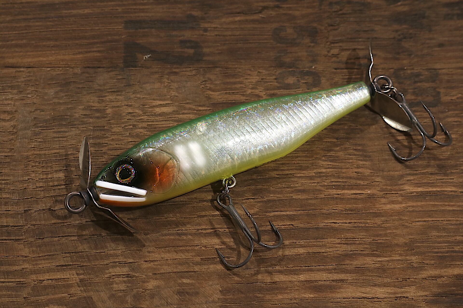 ボリューム感のあるボディのおかげで、デカバス攻略のための様々な状況に対応できる“対応力”を身に付けている。#4大型のフックの搭載。F/S/FSをラインナップし、細かいレンジ攻略が可能。ベイトタックルで(太糸で)余裕を持ってキャストできる自重の確保。プロダクティブゾーンを長く取るための安定した飛距離。強風時でも安定して投げられる悪天候への対応力など、様々な状況に対応できる懐の広さを持たせたのがこのSTEEZプロップである。