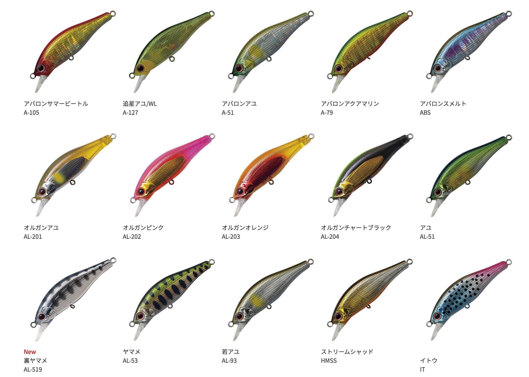 その革新的なコンセプトとフォルムで多大な影響を与えたフラットサイドトゥイッチングミノーのアレキサンドラ。釣り上がりからのアップやアップクロスでピンスポットを撃ち抜き、ロッド操作により最小限の移動距離で効果的なイレギュラーアクションで魚を挑発する。そんな先鋭的な釣りを提案した先駆けのルアーであったと確信しています。小渓流や小沢のアップストリームでの繊細かつ大胆なゲーム、スタンダードな渓流でのレンジを意識したフォーリングからのシェイキングを駆使したサイトフィッシング、春から秋の移りゆく季節、その全てのシーンに対応する基本性能の確かさはアングラーの信頼の裏切りません。ウエイトの形状と位置は着水後のバックスライドさせるようにセッティング。フォーリング姿勢をレベルフォールに近づけ、より強固になったボディを纏い際どいポイントへのアプローチにもたじろぐことはないはずです。イレギュラーアクションや飛び、引き抵抗の軽さといった美点を継承、数少ないチャンスを逃さない能力をフィールドで体感してください。