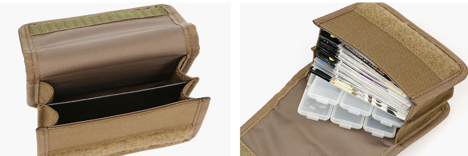 スナップ類やフックなど、バッグの中で収まりの悪かったこれらの小物が一つのポーチにまとまり、フィールドでの作業効率UPに繋がります。フィッシングシーン以外でも、カードケース・ピルケースなどにもお使い頂けます。