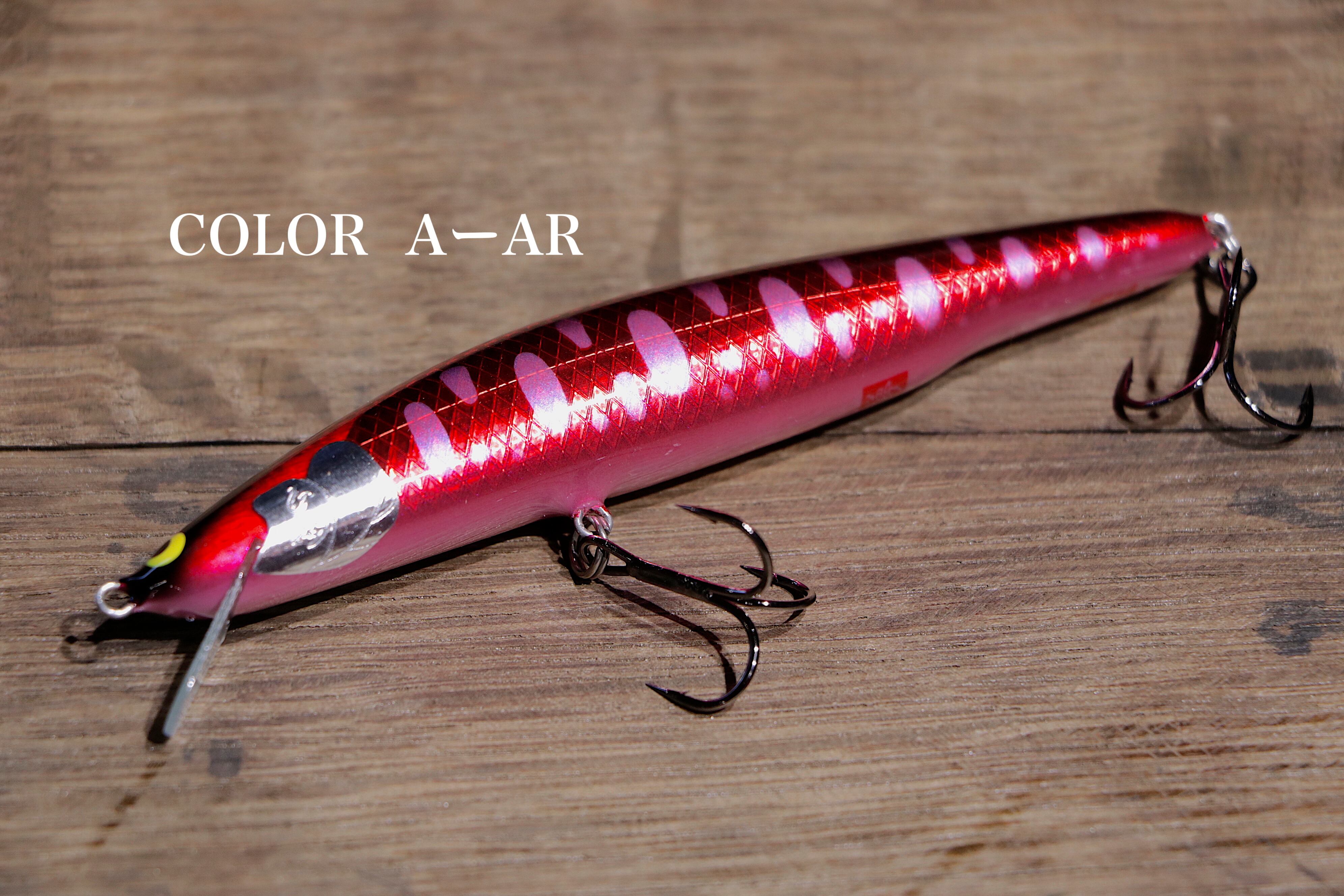従来の110Fのタイトな泳ぎに比べ、90HFのようなしっかりとしたローリングアクション。素材はバルサを使用、泳ぎのレスポンスの良さを出し、キビキビとした動きでロッドワークにも対応し易い。重量設定とウエイト配分により飛距離も出せます。