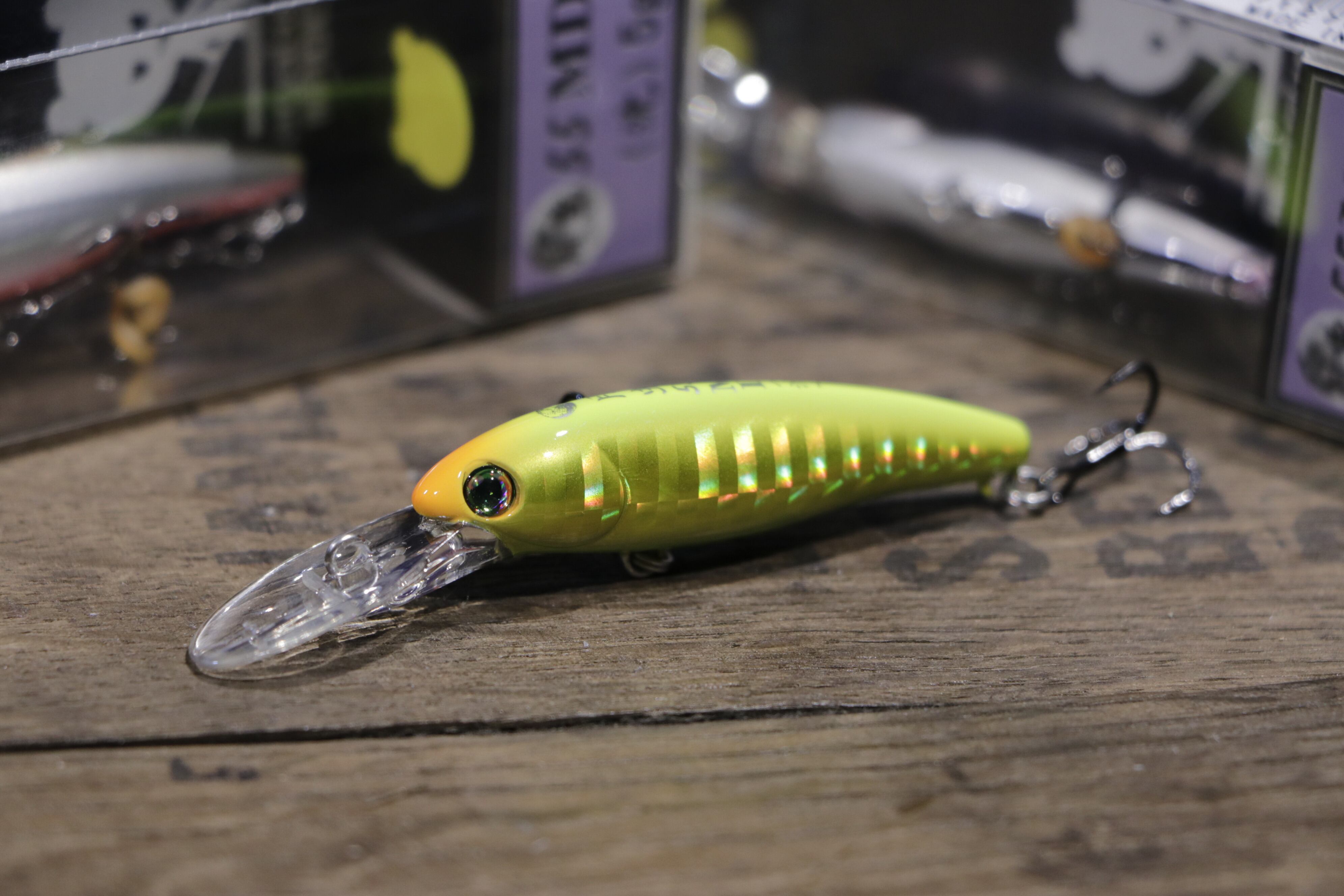 ミディアムデープにより、リトリーブで素早く潜行させて、狙いをつけたレンジに到達したらトゥイッチ&ドリフト。