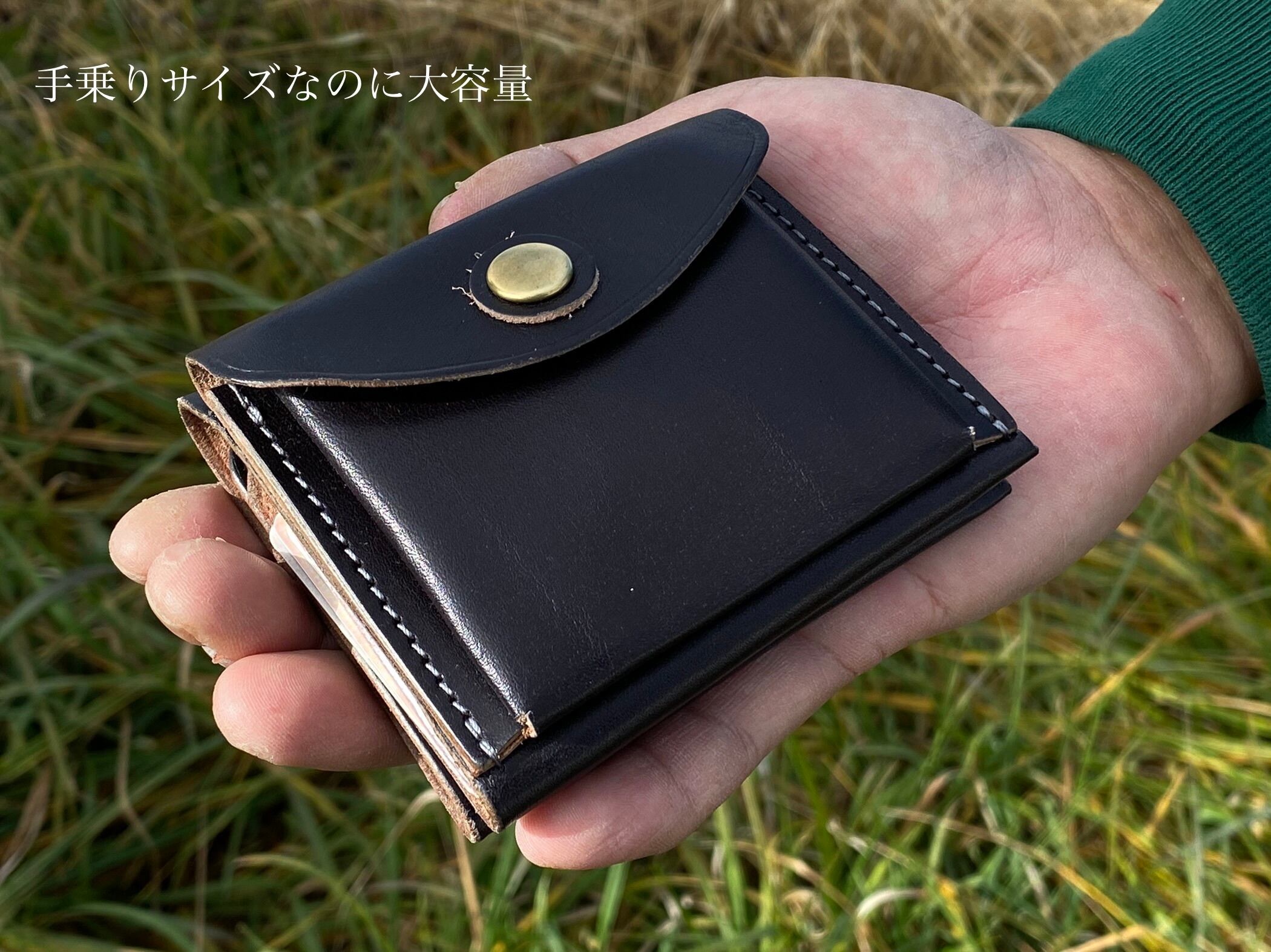 携帯性・操作性を重視し、レザーは耐久性に優れるサドルレザーを使用いたしました。