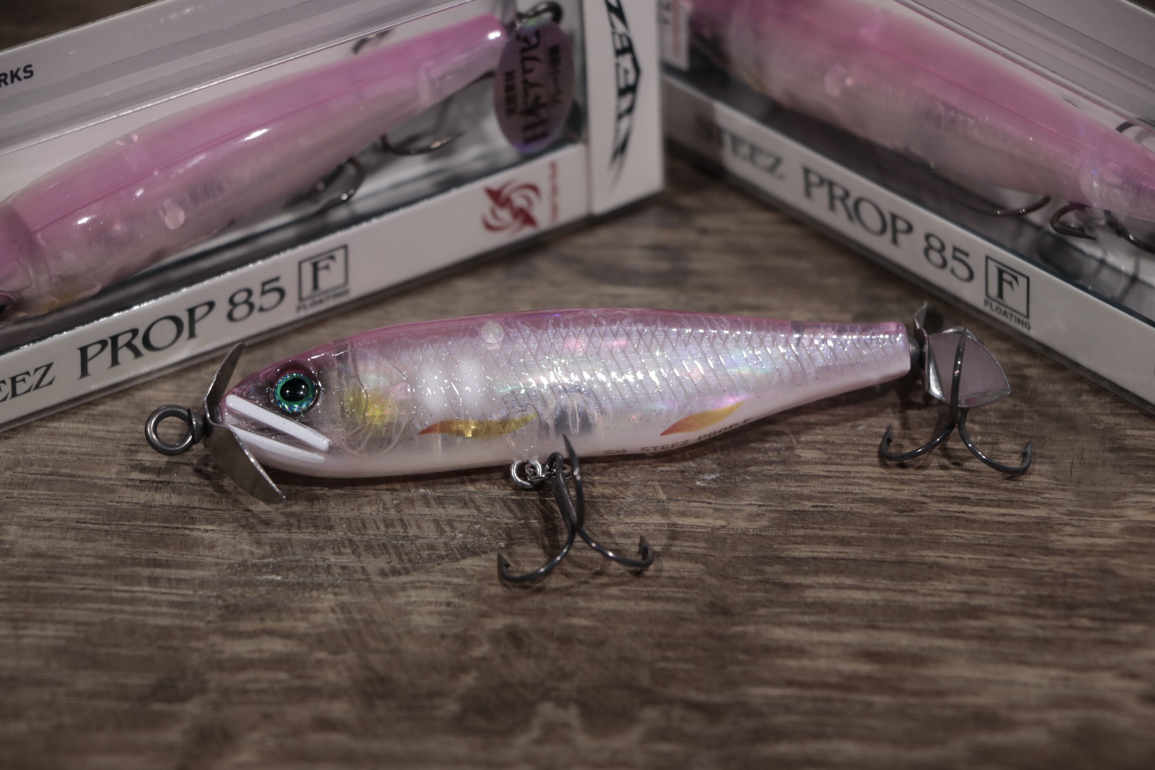 ボリューム感のあるボディのおかげで、デカバス攻略のための様々な状況に対応できる“対応力”を身に付けている。#4大型のフックの搭載。F/S/FSをラインナップし、細かいレンジ攻略が可能。ベイトタックルで(太糸で)余裕を持ってキャストできる自重の確保。プロダクティブゾーンを長く取るための安定した飛距離。強風時でも安定して投げられる悪天候への対応力など、様々な状況に対応できる懐の広さを持たせたのがこのSTEEZプロップである。