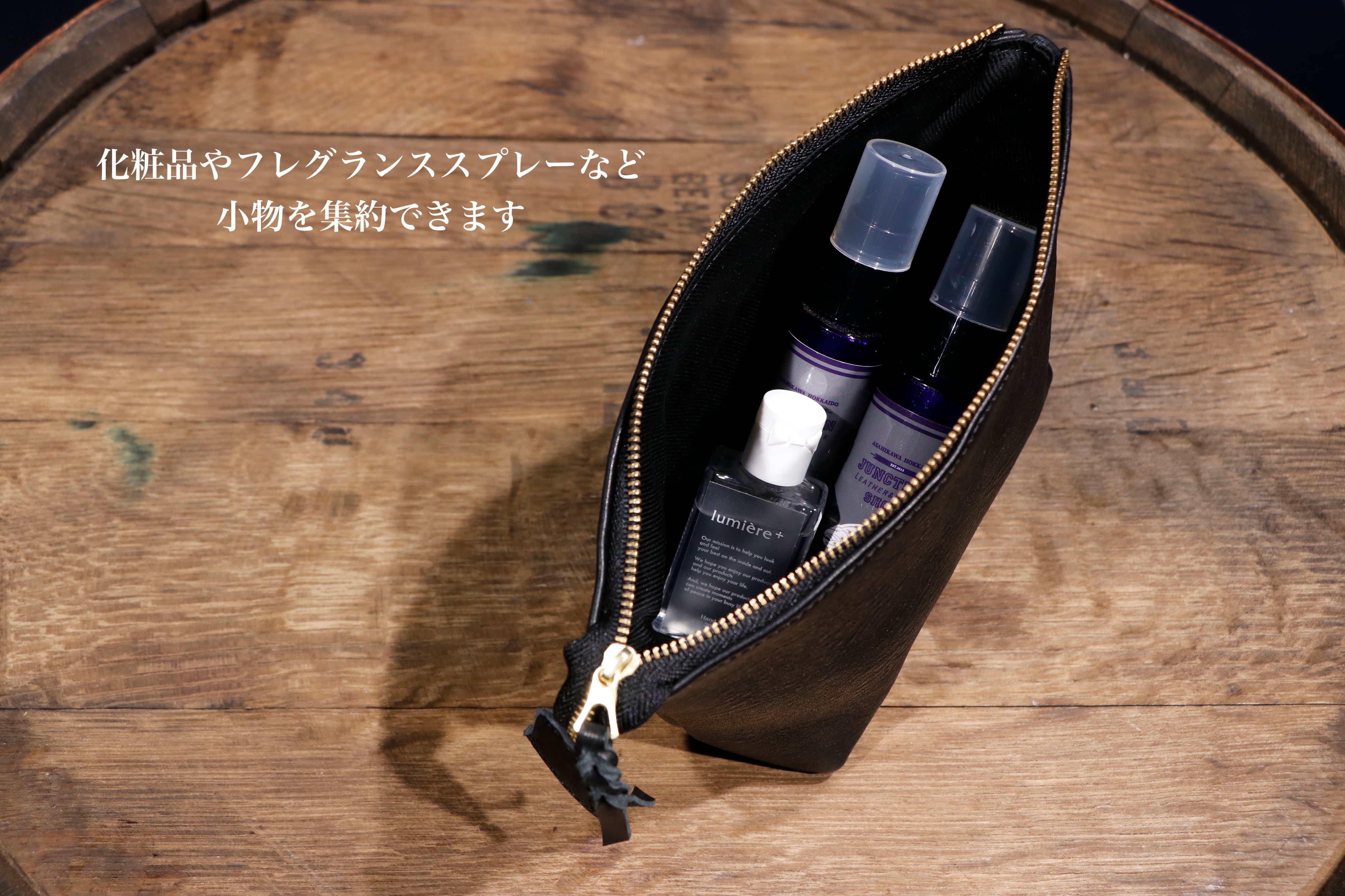 質感も柔らかく触り心地の良いポーチとなっております。