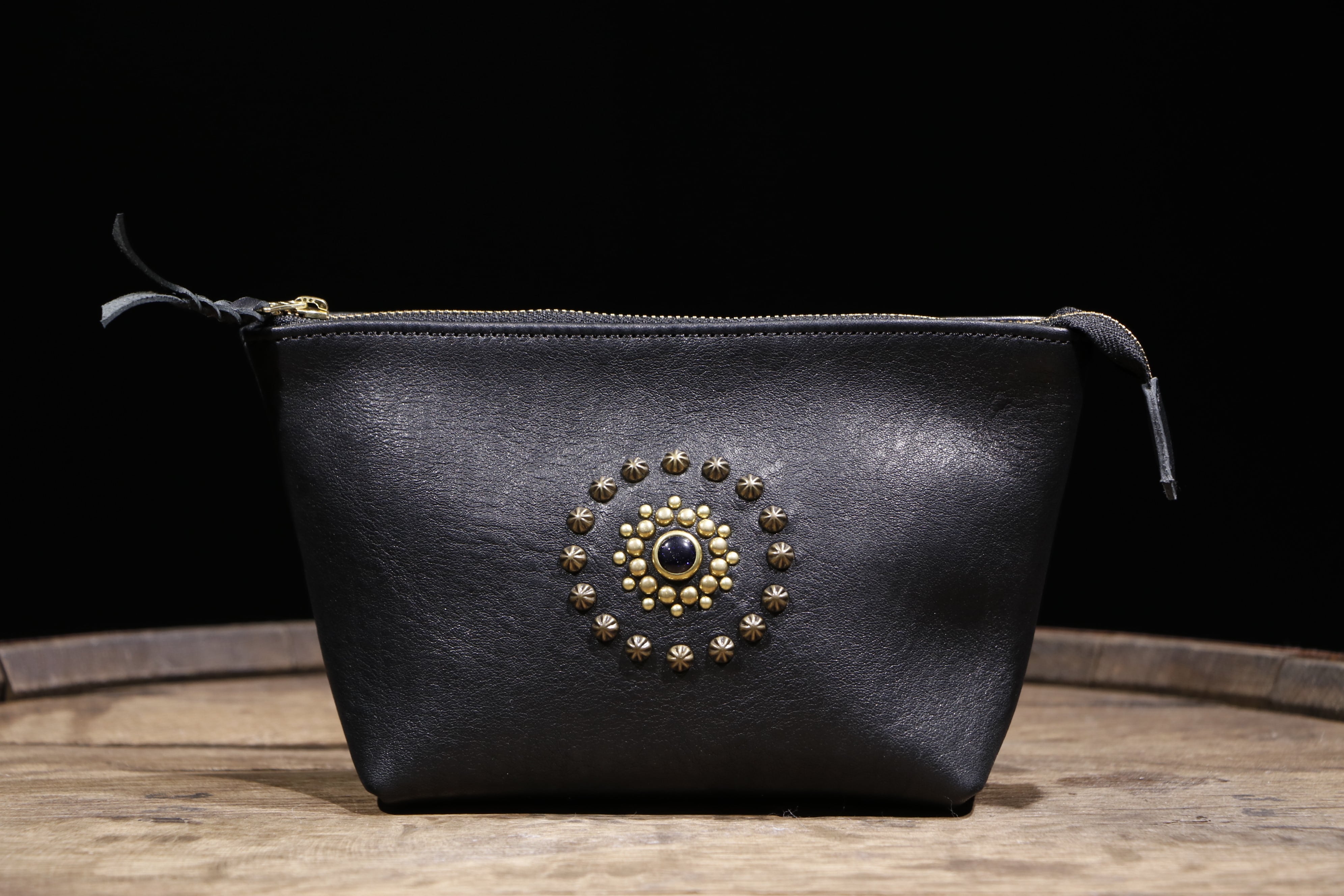 ブラススタッズの他、ブルーゴールドストーンを施しました。