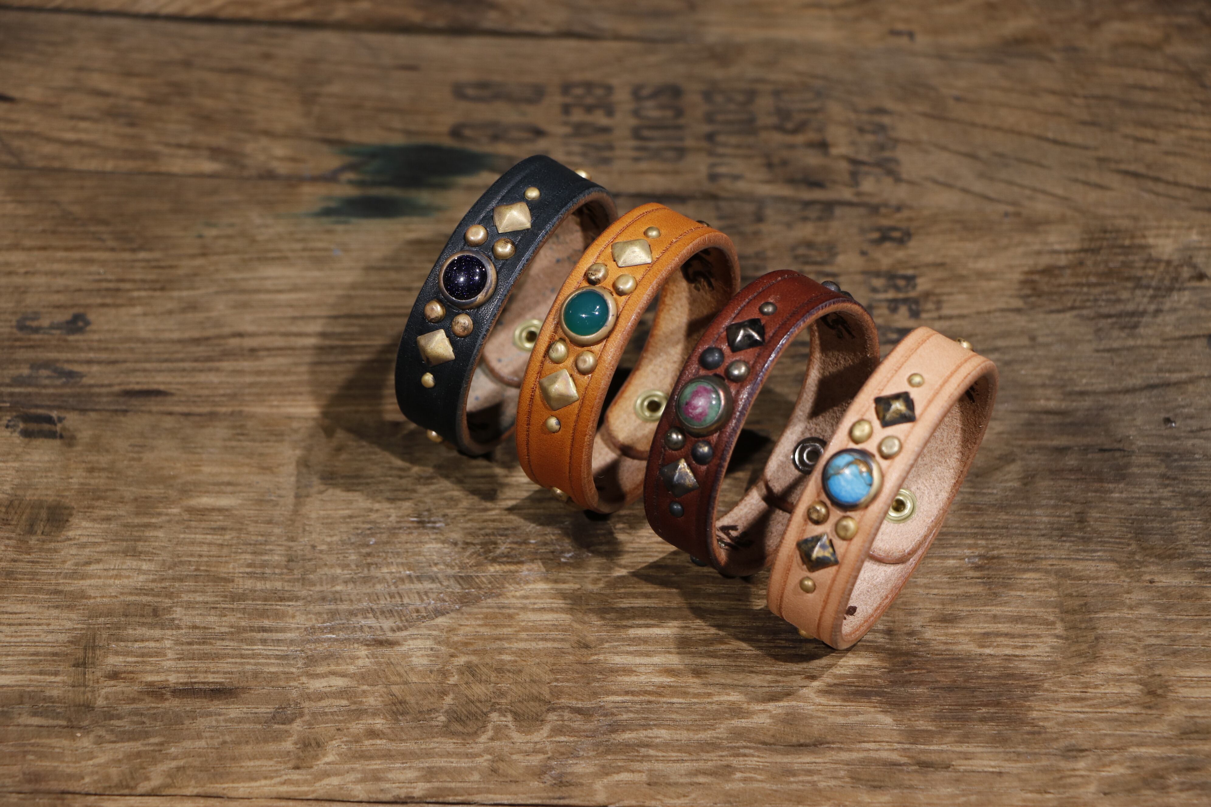 color: Black × Blue Goldstone / Tan × Turquoise / Camel × Green Onyx / Brown × Ruby in Zoisite