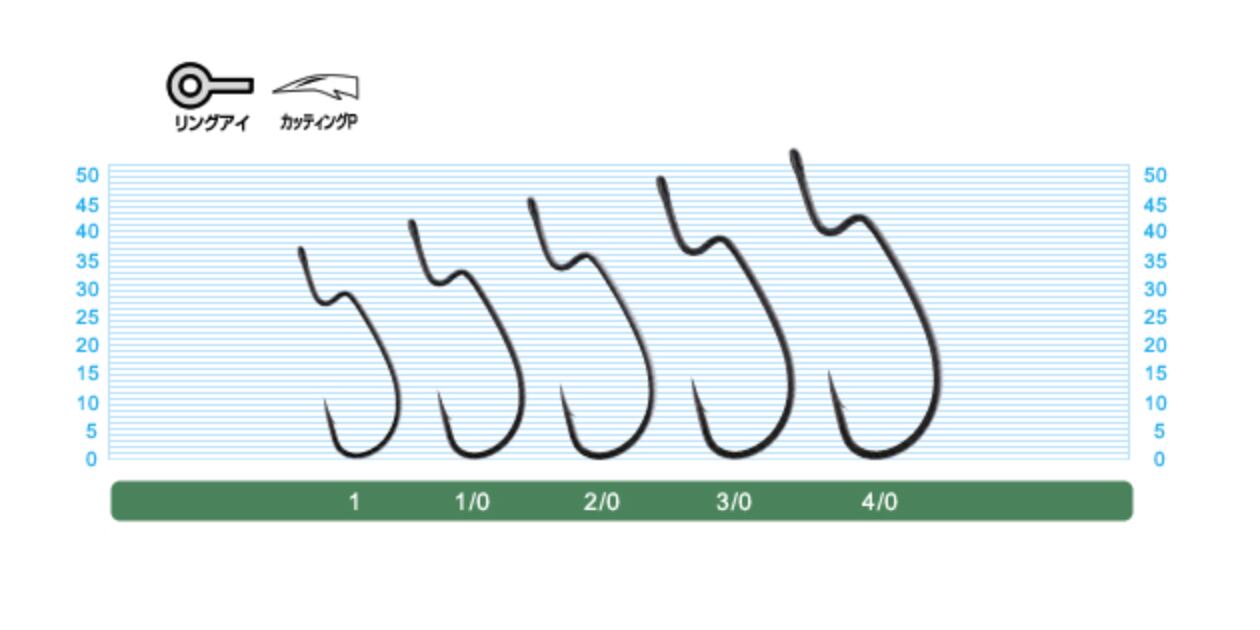 とにかく強く、曲がらない極太ヘビーワイヤー仕様。また針先はカッティングポイントで貫通性がよく、アイの部分はナツメオモリの使用も可能とするラージアイ機構。