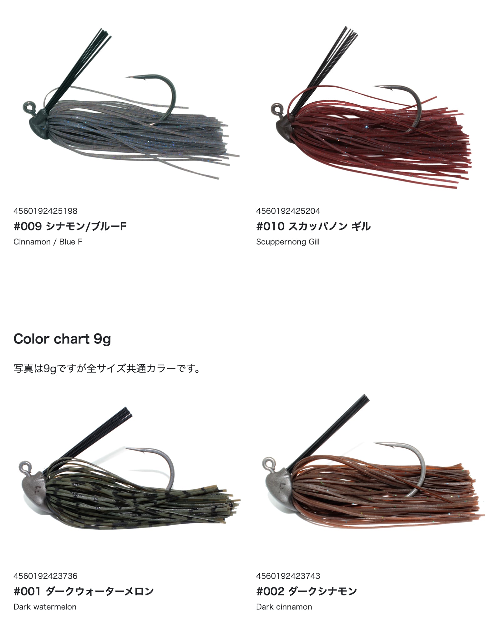 スライドフォールジグと比較するとフックサイズが4/0にアップ、ウィードカードも強めに設定。スタッガーワイドをトレーラーにしたフォールやスタッガーオリジナルをトレーラーにしたスコーンでの使用が最適。