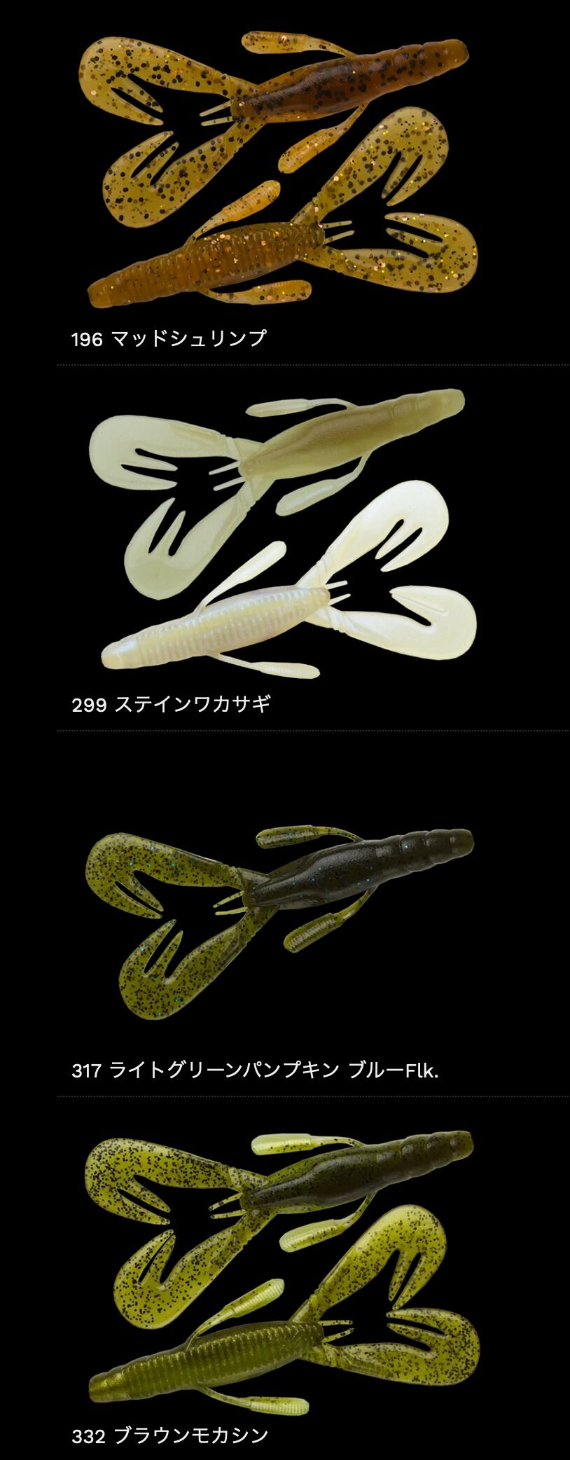 水かきの強いバタバタフォールによってサスペンドバスを攻略するのが「エスケープ スイムツイン」。メインのツインアームには独自のサイドウォール形状アームマウントを導入。これにより5g程度のライトウエイトシンカーでもしっかりとアクションし、それでいて10g、14gシンカーを使ったリアクションフォールでも振り幅をキープ。スローからファストまでフォールスピードを選ばないテールアクションを獲得しています。さらには通常のテキサスリグだけでなく、バックスライドセッティングでも見事なスライドフォールをキープ。もちろんマテリアルは高比重素材をメインに塩を混ぜ込む事でキャスト操作性を向上。味と匂いの粒子で喰い込みを確実なものにします。実績十分の「エスケープ」シリーズに新たなレジェンドが刻まれます。