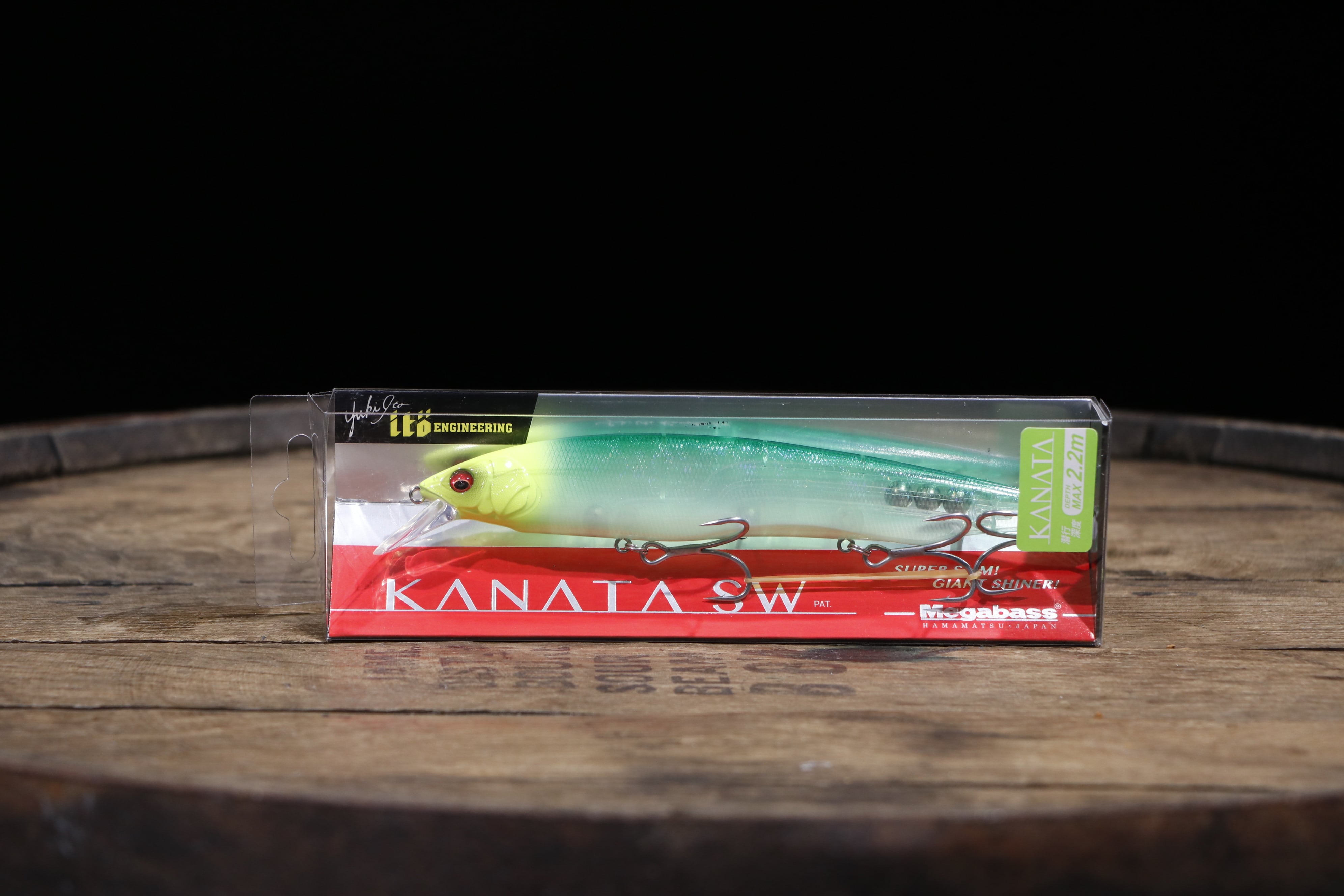 カナタSWは大型のベイトを捕食しているターゲットに絶大な効果を発揮するハイ・インパクトジャークベイトです。体高のある160mmのシルエットはインパクト抜群。なのに、引き抵抗は極めて軽く、テンポよくエリアをサーチするレスポンシビリティを兼備。ストレートリトリーブでは、強烈な明滅を伴うハイピッチ・ロールアクションでターゲットに強烈にアピール。なお、極限までシェイプアップしたスリムなフラットサイドフォーマットと、内蔵された「超高比重タングステン・トリプルオシレートシステム」は、逆風をものともしない圧巻のスーパーロングキャストを実現。スプーキーなモンスターフィッシュから警戒されない的確なロングディスタンス・アプローチを可能としています。