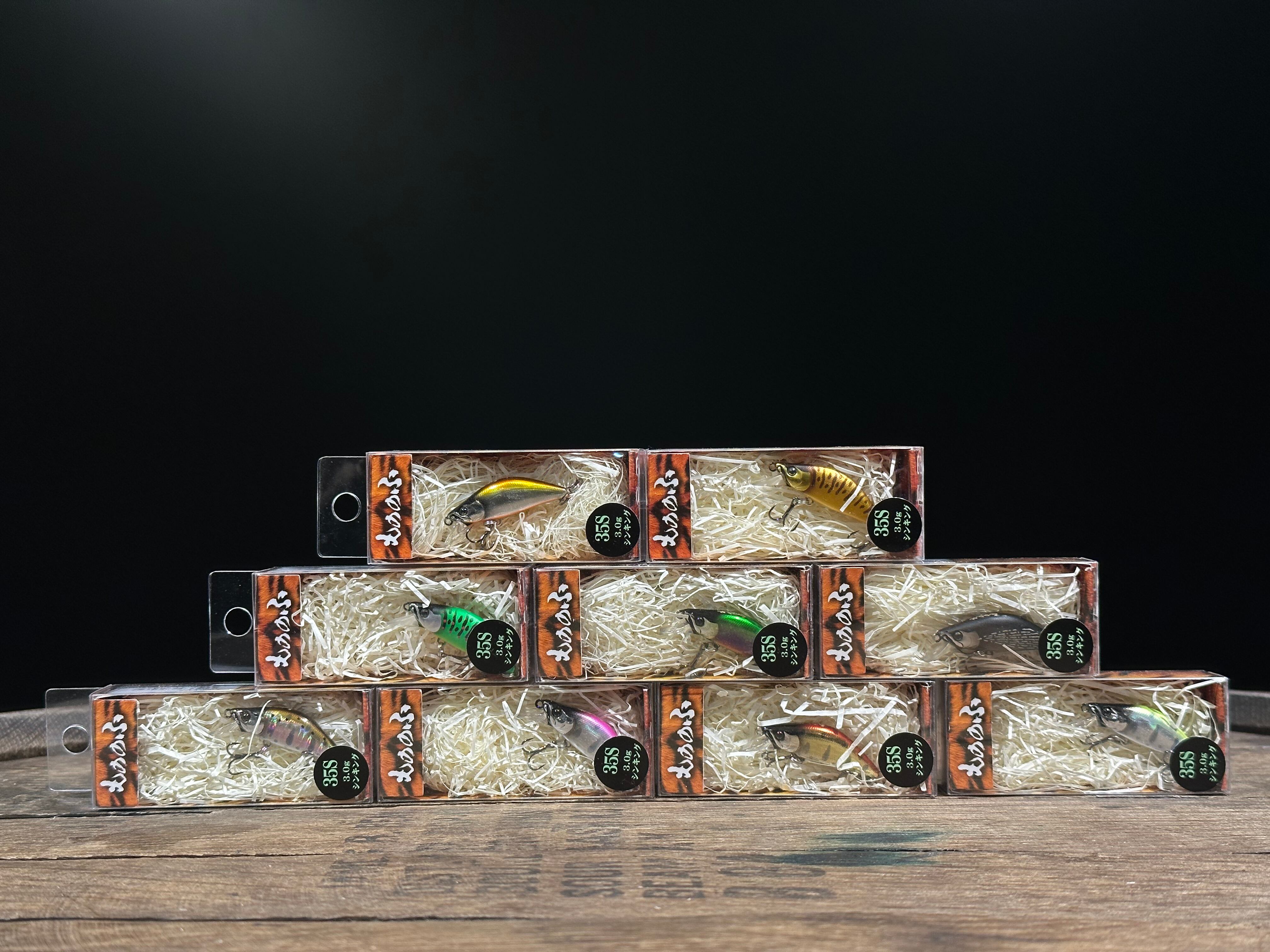 35mmのボディに対し3.0gのウェイトがもたらす飛距離はクラス最強。その重量故にキャストが容易で、沢や源流におけるアキュラシーを求められるシチュエーションでも威力を発揮します。シリーズ中では比較的ゆっくり沈む為、ゆっくりじっくりとリトリーブ、アクションすることが可能、ドリフトも得意で45S、50Sのフォローアイテムとして使うことも考えて作られています。もちろんアップ、ダウンにも対応、35mmという小粒サイズにも関わらずオールマイティに使え、フォローベイトにとどまらず出番が多くなることは間違いないでしょう。