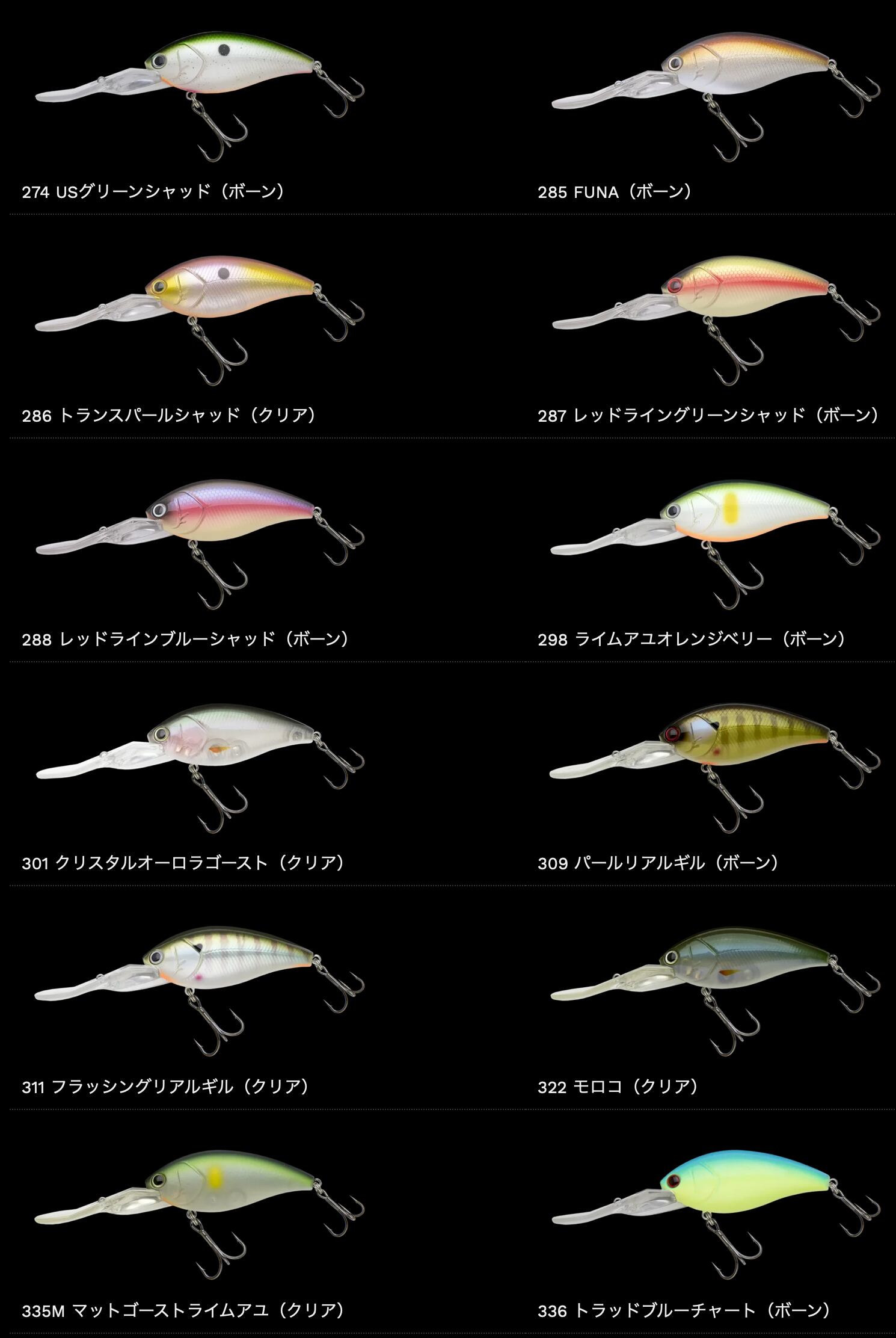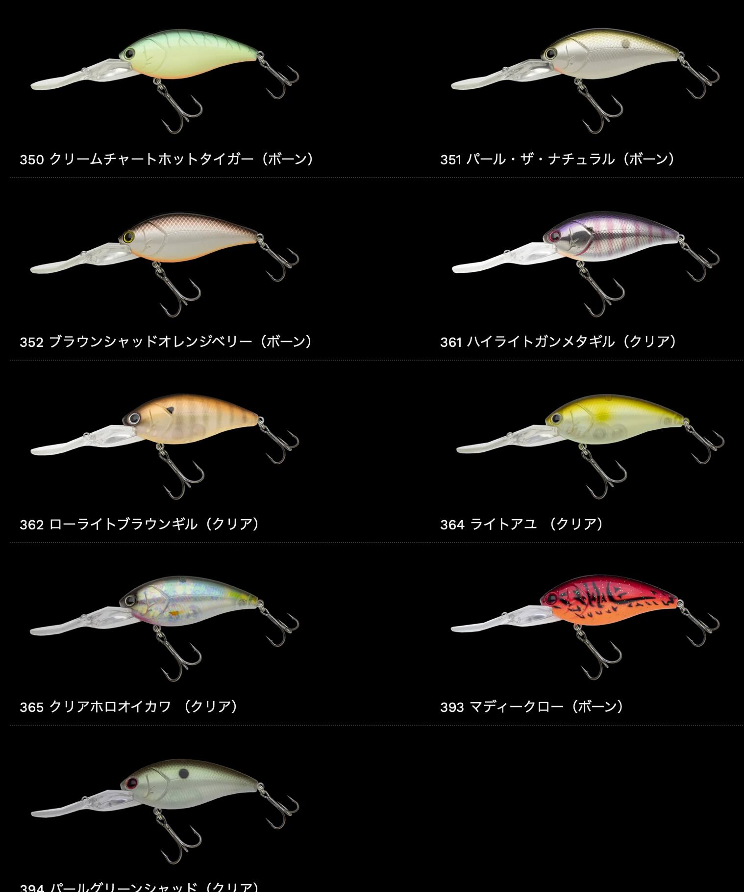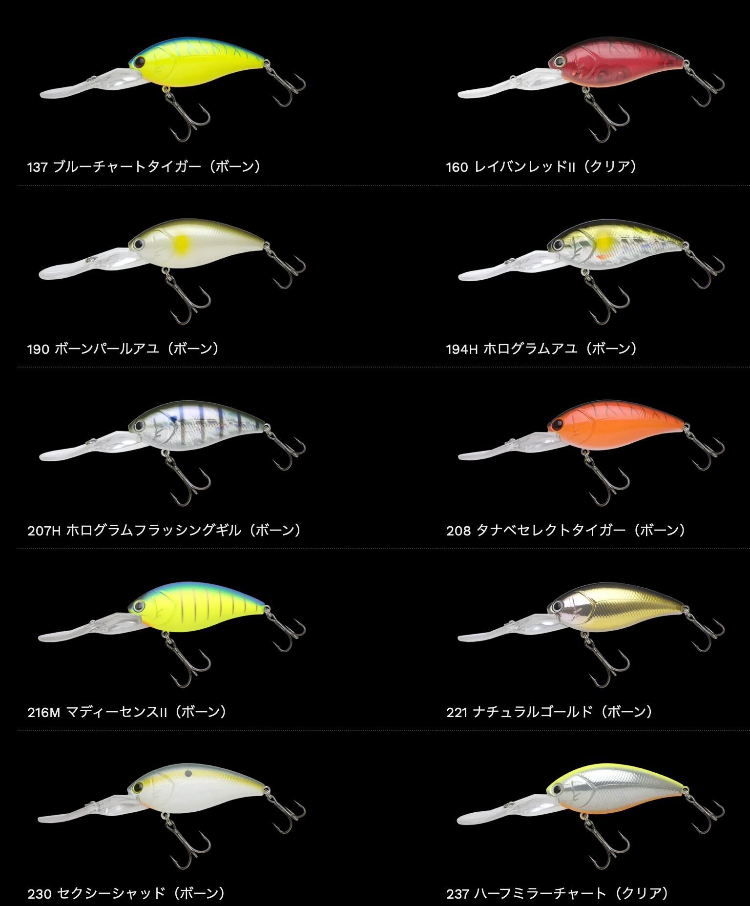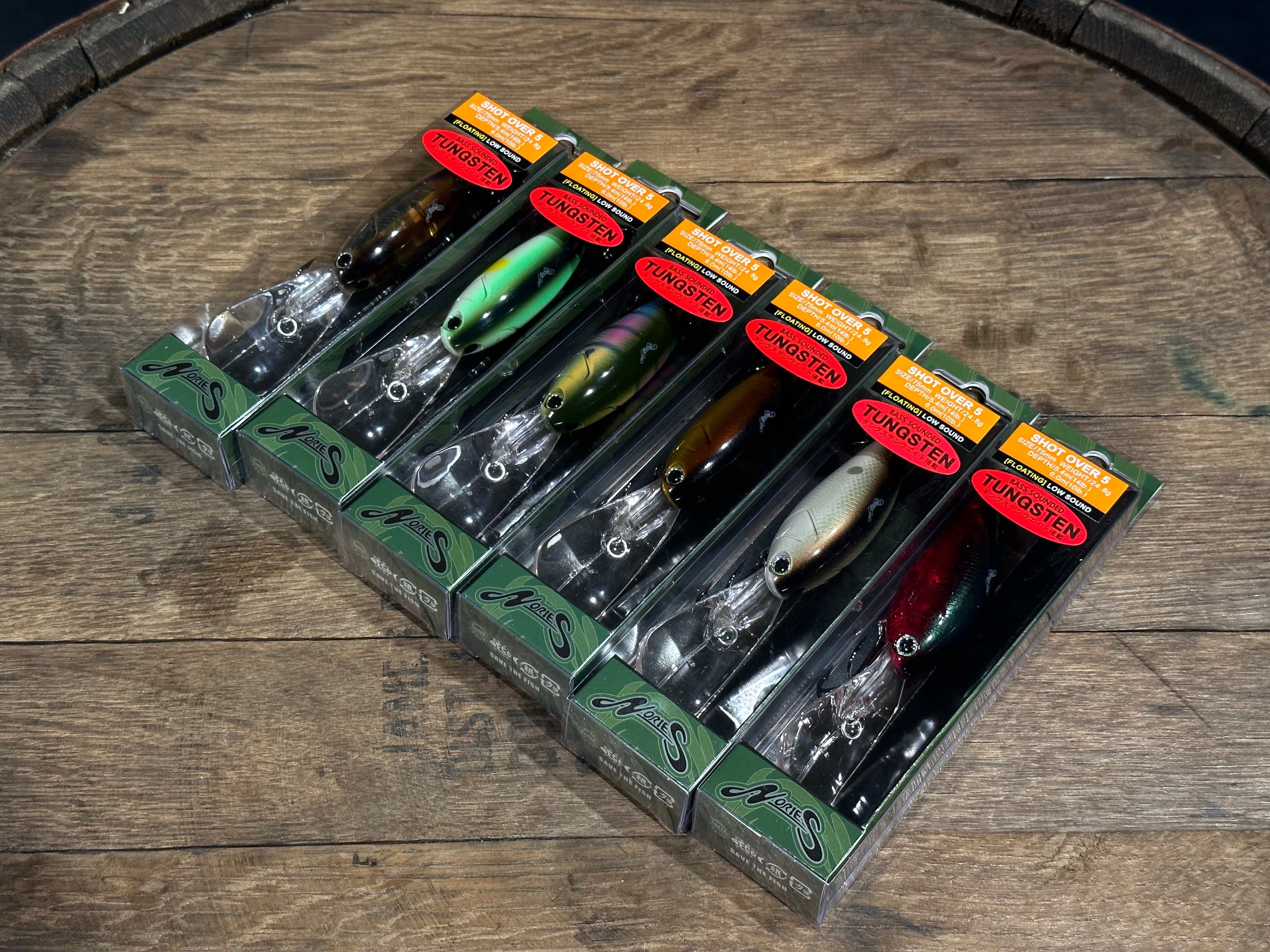ハードベイトの潜行深度としてはほぼ限界と言える水深5mをオーバー。しかもその水深をドラッギングやニーリングではなく、通常のキャスティングでトレースできる優れた潜行能力を持つディープクランクが「ショット オーバー5」です。「オーバー4(トリプルフルサイズ)」と同じ75mmのボディでありながら14lbラインで5.4m、10lbでは6.0mへ到達させることが可能。さらにボディサイズを抑えたことで巻き抵抗も低減し、広大なエリアでも引き続けられる軽いリトリーブ感を獲得しています。もちろん「オーバー4」同様に、安定姿勢でロングキャストを可能にするキャスティングフィンを採用し、ウィードやソフトボトムへの刺さりを低減するノンスタックビル仕様。アクションは水質を選ばないオールコンディション対応を狙ったタイトウォブルロール。しかもボディとリップとを別成型し組み合わせる構造を採用し、カラーによってボディマテリアルをボーンホワイト系ABSとクリア系ABSを使い分け、これによりカラーに伴ってアクションやサウンドの差も生まれ、アピールの強弱という引き出しをさらに広げます。効率の良い釣りがしにくいディープウォーター攻略の中で、圧倒的にスピーディーな展開が可能なディープクランキング。その優位性が「ショット オーバー5」でさらに際立ちます。