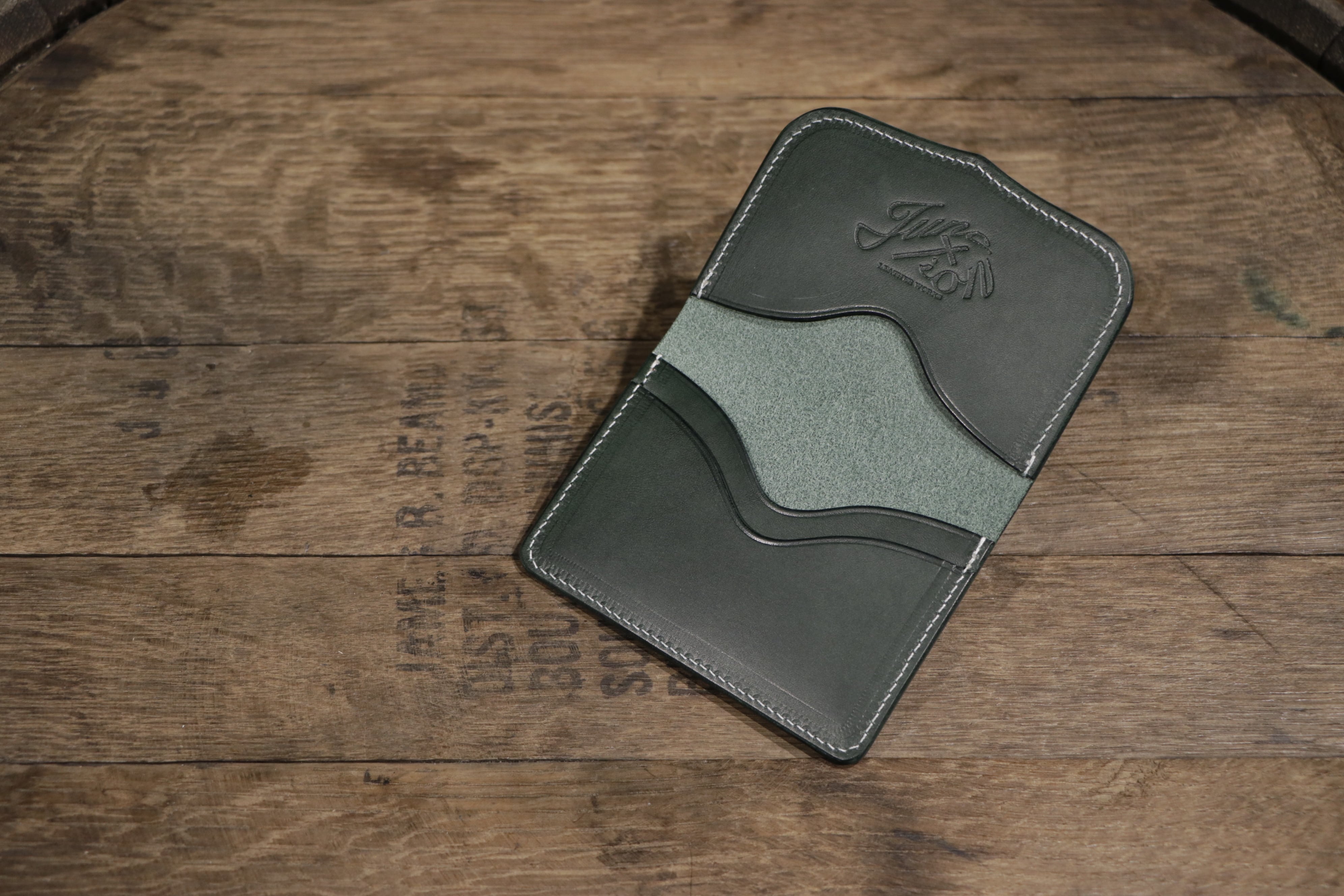 マットグリーンカラーが特徴的カードケースに仕上がりました。