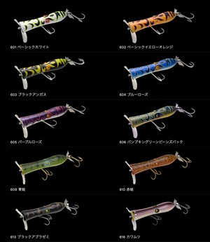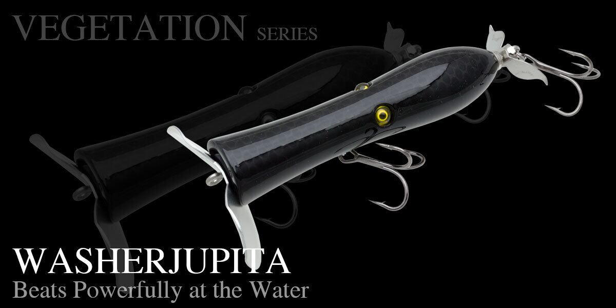 細身のボディーと大型ノイジーカップ、テールには微波動演出のための特殊加工ステンレスプロップ。通常であれば互いのパーツとボディシェイプで動きがロックしてしまうような組み合わせを、見事なロール系ウェイキングプラグへと変身させたのが「ウォッシャジュピタ」。ウッド素材の選択から、軽やかな動き出しと安定したロールをキープする構造バランスの決定に至るまで、アカシブランドとのコラボレーション作品にふさわしい仕上がり。最大のアピールにして最小の移動距離はシリーズの中でもナンバーワンです。