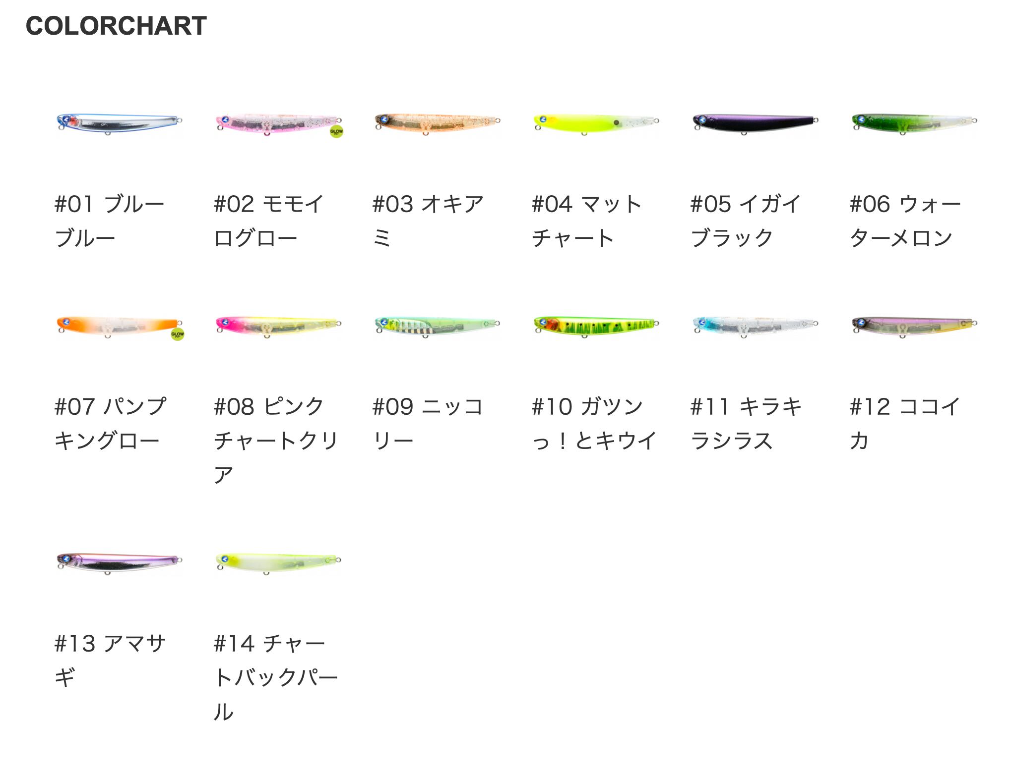 抜群の飛距離とバックスライド気味のシミーフォール、急速浮上とロール&フラッシング。遠距離アサルト系シンキングペンシル。堤防や磯、河川やサーフ。全てのシャローゲームと一部ボトムゲームに於いて、プラグ特有の存在感を確実に持ちながら、極限の『弱さ』に磨きを掛けたアービン60Sでライトゲームプラッギングの世界はまた一つ進化します。