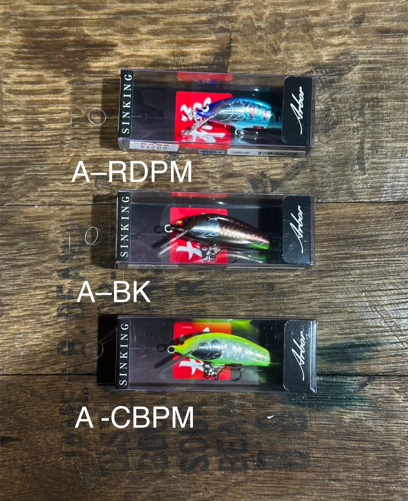 従来のアルボル シンキングシリーズとは異なった水平フォール(シミーフォール)のセッティングで水噛みが早く、アップストリームで探る時や着水後すぐに動きを入れたい小渓流での使用や、渓流域で着水音を極力控えるキャストで、水面を意識した魚にアプローチする時にも扱い易い。